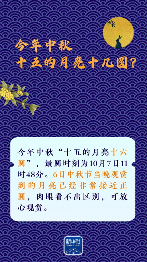 10月6日將迎中秋佳節(jié)。這個闔家團(tuán)圓的節(jié)日,賞月是無可爭議的重頭戲之一。今年中秋,十五的月亮十幾圓?月亮有啥特殊看點?講究什么“姿勢”?還有什么“彩蛋”?請收下這份中秋賞月指南,科學(xué)賞月,做好攻略→