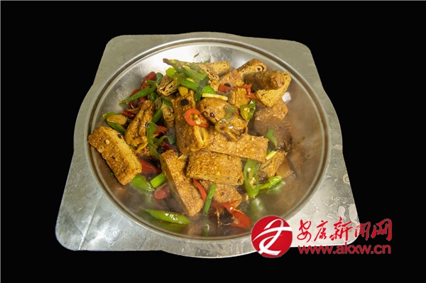 2011年,王鵬以糧食巷自己的住房為經(jīng)營場所注冊了寧陜縣菜根香私房菜菜館。同年,他又注冊成立了菜根香餐飲文化有限公司,致力于推廣地方餐飲文化。這里也是王鵬做高端菜品創(chuàng)作的起點。以土雞、山藥、蕓豆為主料的“瓦罐雞”經(jīng)過小火慢燉,雞肉軟嫩,湯清味鮮?!案慑伇ざ垢笔嵌垢すu蛋液在高溫下油炸后配以臘肉炒制調(diào)味后放入干鍋中,豆腐皮外形就有了豹紋,匠心制作的菜品咸香、豆香、復(fù)合香,自是山珍中難得的美味。10多年過去,這道菜仍然是大眾點評中的熱選菜品。