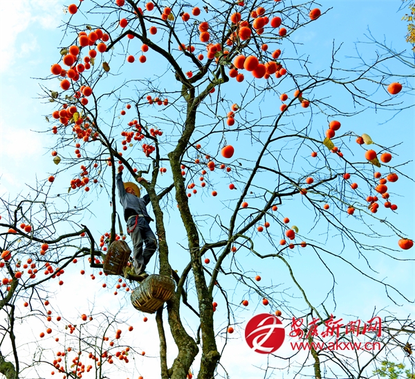 眼下正是柿子成熟的季節(jié),白河縣城關(guān)鎮(zhèn)安福村芍藥花園區(qū)附近漫山遍野的柿子,像一個個橘黃色的小燈籠掛滿枝頭。