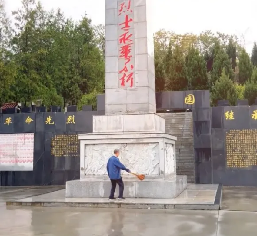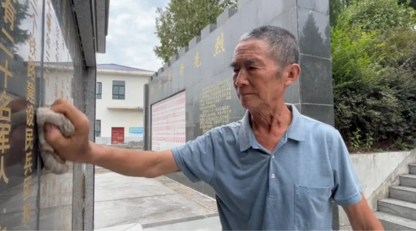 9月5日,守陵人王開茂在烈士陵園擦拭紀(jì)念碑。(圖片來源:嵐皋縣融媒中心)UWg安康新聞網(wǎng)