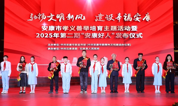 本次活動(dòng)以“弘揚(yáng)文明新風(fēng) 建設(shè)幸福安康”為主題,由市委宣傳部主辦、石泉縣委和縣政府承辦,旨在深入學(xué)習(xí)貫徹黨的二十屆四中全會(huì)精神,扎實(shí)推進(jìn)崇德向上幸福安康建設(shè);顒(dòng)現(xiàn)場(chǎng),通過(guò)播放典型人物短片、現(xiàn)場(chǎng)互動(dòng)訪談等形式,生動(dòng)再現(xiàn)了陳登發(fā)、高虎、黃壽琴等好人代表的感人事跡。市級(jí)領(lǐng)導(dǎo)及“中國(guó)好人”“陜西好人”等先進(jìn)典型代表為28名新入選的“安康好人”頒發(fā)紀(jì)念證書(shū);顒(dòng)現(xiàn)場(chǎng)同時(shí)發(fā)布了2025年安康市“新時(shí)代好少年”名單,24名青少年獲得殊榮。