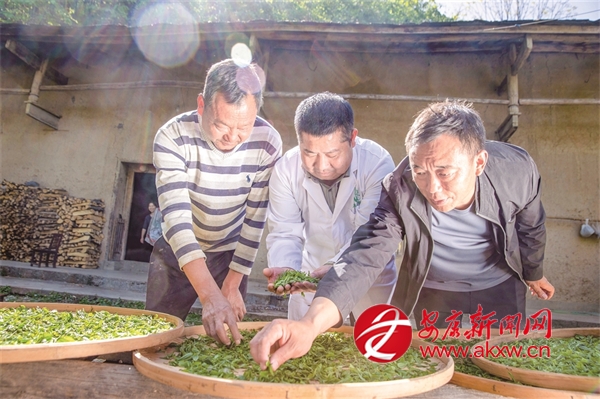 “十四五”期間,我市持續(xù)推進茶產(chǎn)業(yè)發(fā)展,努力實現(xiàn)茶產(chǎn)業(yè)“四時有收”。圖為紫陽白茶非遺制作技藝代表性傳承人在高橋鎮(zhèn)裴壩村,向茶農(nóng)推廣紫陽白茶非遺制作技藝。 李勝璋 攝