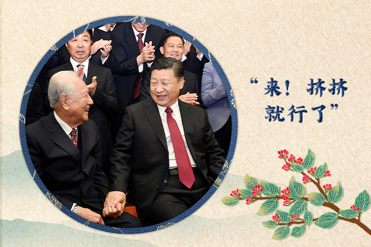 總書記拉著他們的手,請(qǐng)兩位老人坐到自己身邊來(lái),兩人執(zhí)意推辭,總書記一再邀請(qǐng):“來(lái)!擠擠就行了,就這樣。”自然而然的舉動(dòng),正是總書記尊老敬賢的真情流露。