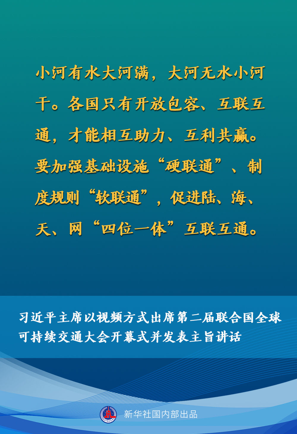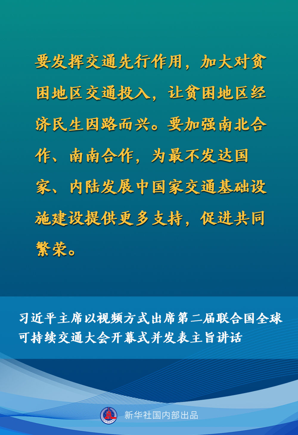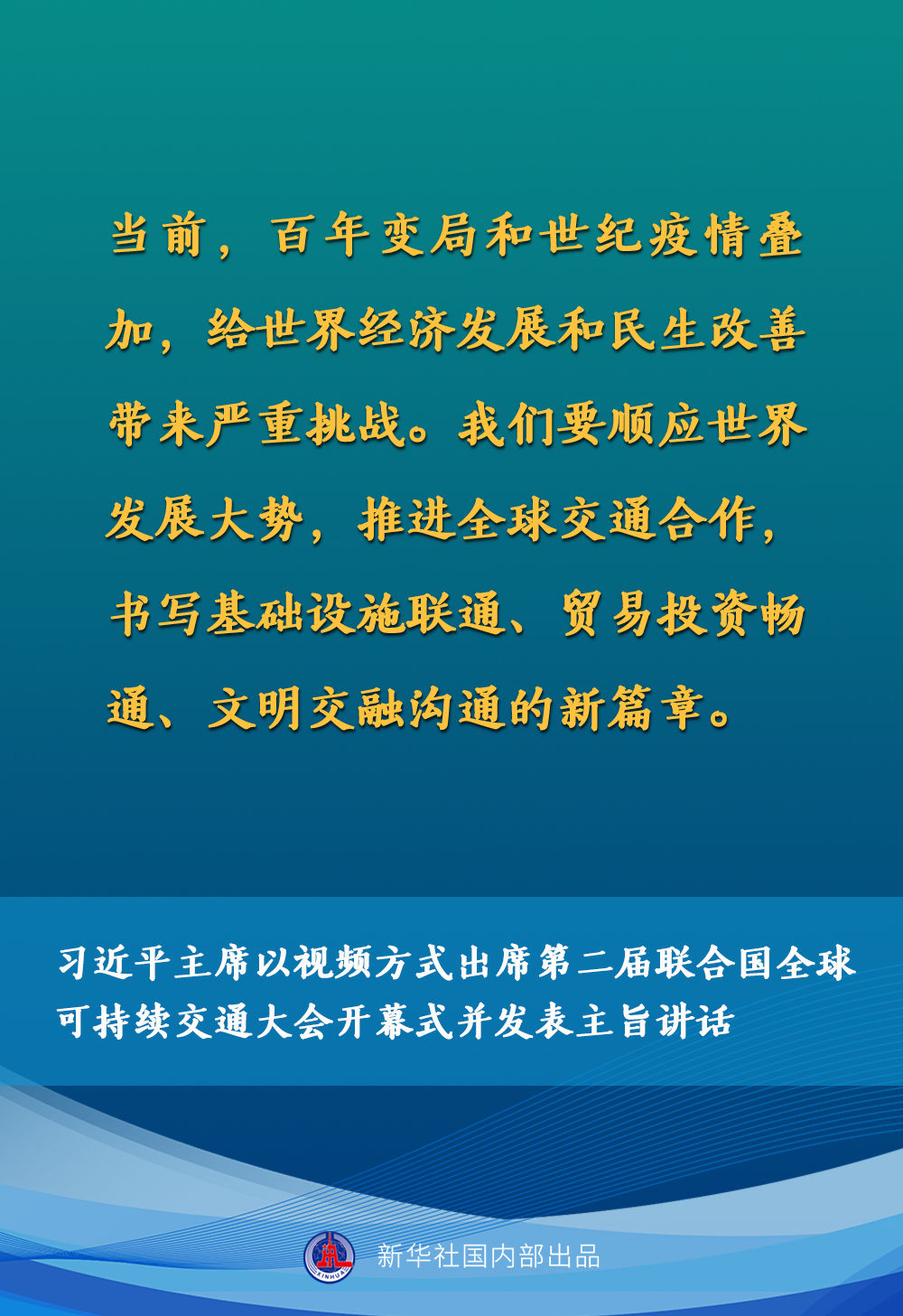 國(guó)家主席習(xí)近平10月14日晚以視頻方式出席第二屆聯(lián)合國(guó)全球可持續(xù)交通大會(huì)開(kāi)幕式并發(fā)表主旨講話。講話有哪些主要內(nèi)容,一起來(lái)看。 xe8安康新聞網(wǎng)
