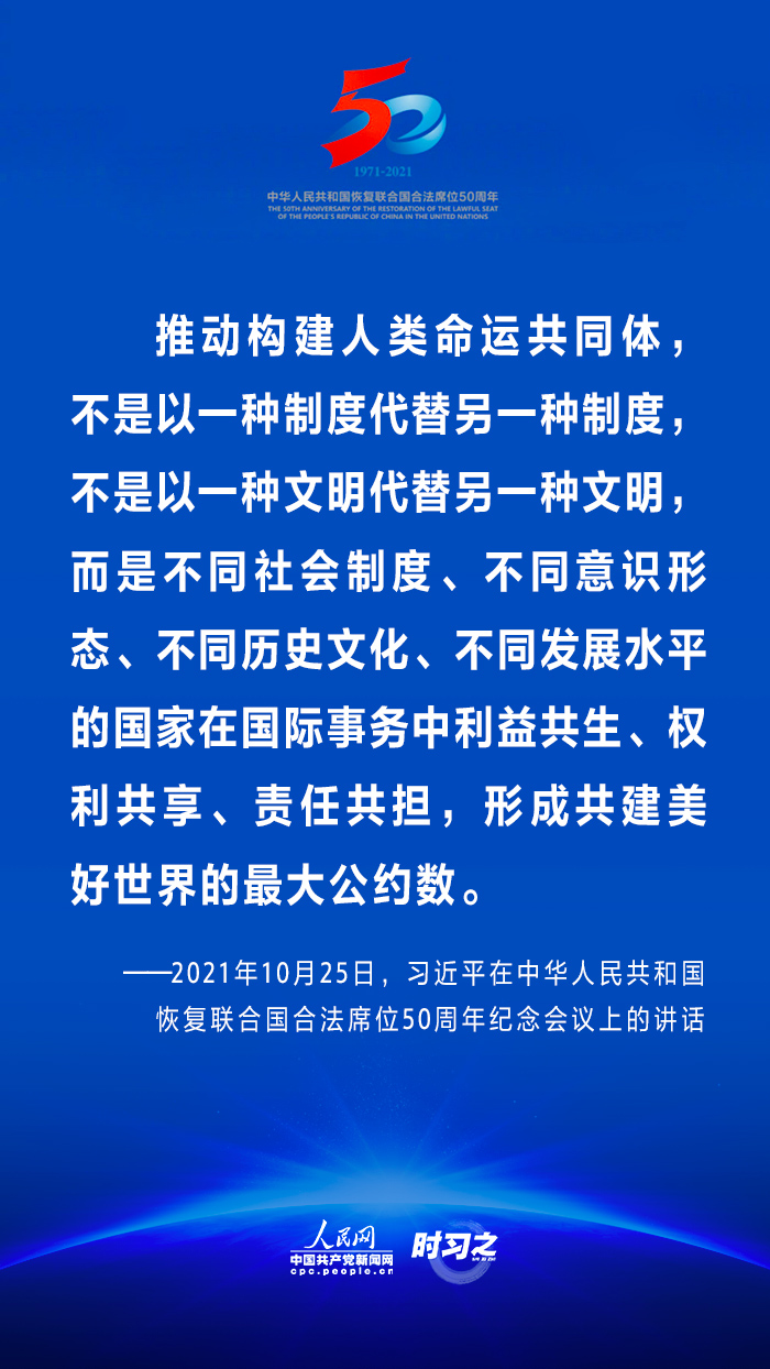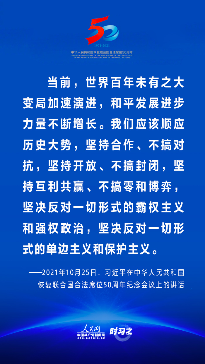 10月25日,國家主席習(xí)近平在北京出席中華人民共和國恢復(fù)聯(lián)合國合法席位50周年紀(jì)念會議并發(fā)表重要講話。在講話中,習(xí)近平回顧了中華人民共和國恢復(fù)在聯(lián)合國合法席位50年以來的重大成就,面對百年未有之大變局,重申中國將始終做世界和平的建設(shè)者、全球發(fā)展的貢獻(xiàn)者和國際秩序的維護(hù)者。 WTT安康新聞網(wǎng)
