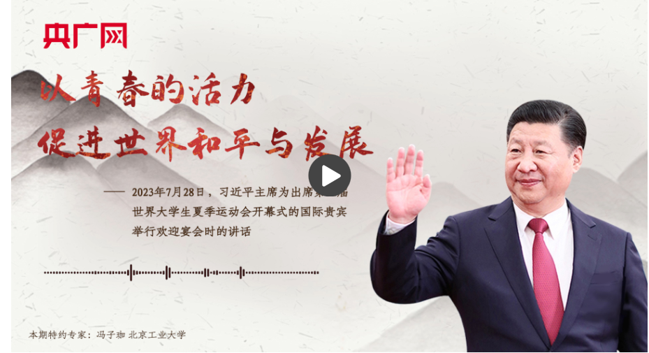 這段話出自2023年7月28日習近平主席為出席第31屆世界大學生夏季運動會開幕式的國際貴賓舉行歡迎宴會時的講話。