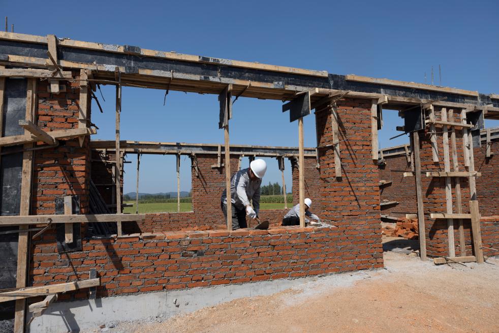 近日,在黑龍江省尚志市老街基鄉(xiāng),施工人員正在作業(yè)。新華社記者 謝劍飛 攝