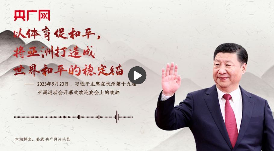 這段話出自2023年9月23日習(xí)近平主席在杭州第十九屆亞洲運動會開幕式歡迎宴會上的致辭。