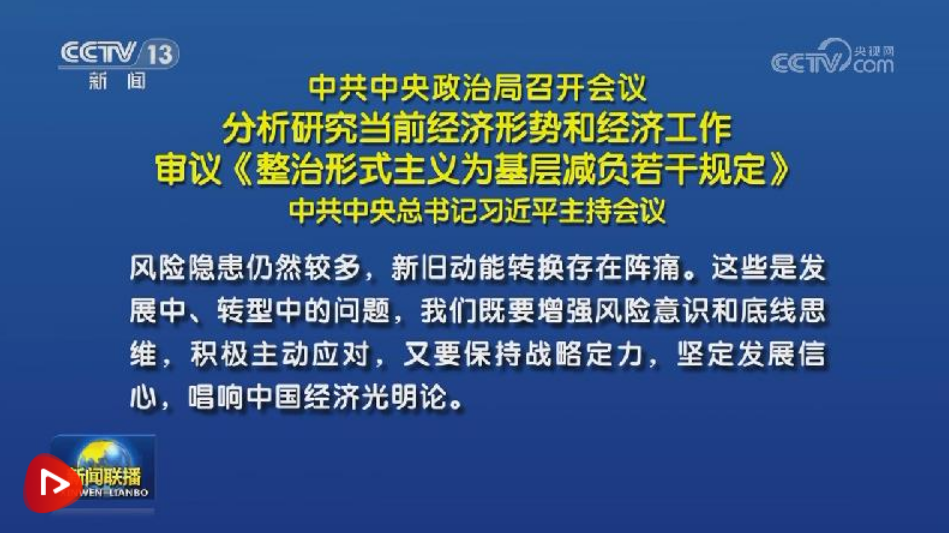 這次中央政治局會議就下半年經(jīng)濟(jì)工作提出的部署要求重點明確、路徑清晰。我們要抓好落實,加大宏觀調(diào)控力度,增強(qiáng)經(jīng)營主體活力,穩(wěn)定市場預(yù)期,以提振消費為重點擴(kuò)大國內(nèi)需求,培育壯大新興產(chǎn)業(yè)和未來產(chǎn)業(yè),推進(jìn)高水平對外開放,持續(xù)防范化解重點領(lǐng)域風(fēng)險,扎實推進(jìn)鄉(xiāng)村全面振興,加大保障和改善民生力度,堅定不移完成全年經(jīng)濟(jì)社會發(fā)展目標(biāo)任務(wù)。