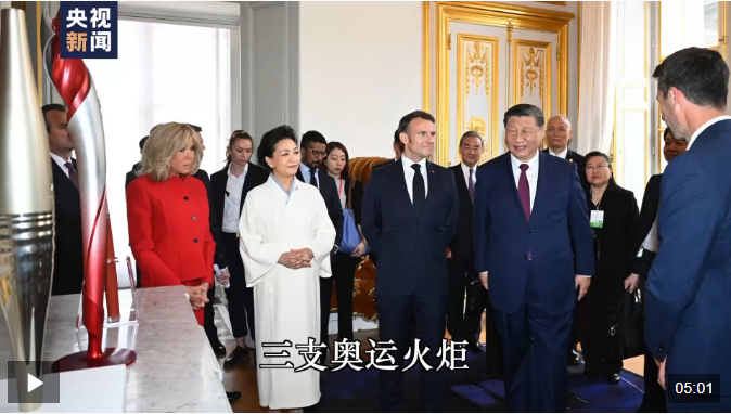 三個(gè)多月前,正在法國進(jìn)行國事訪問的習(xí)近平主席贈送給馬克龍總統(tǒng)北京雙奧火炬,馬克龍總統(tǒng)則以巴黎奧運(yùn)火炬回贈。習(xí)近平主席說:“法國是一個(gè)體育強(qiáng)國,我衷心祝愿巴黎奧運(yùn)會取得成功。中方將派出高水平代表團(tuán)赴法參賽。”