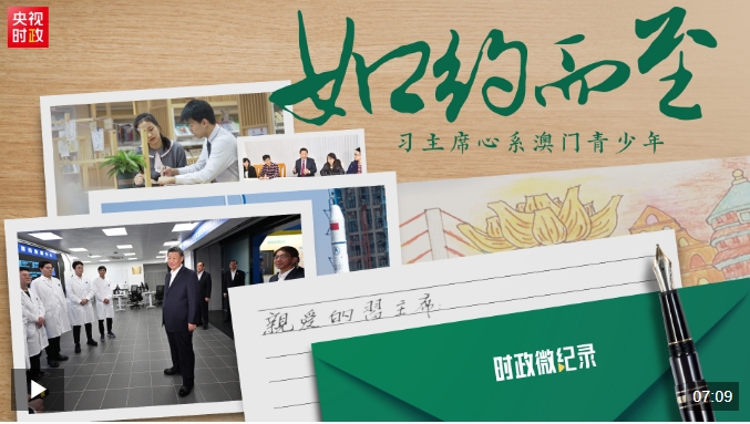 習(xí)近平主席說,青年是澳門的希望和未來,是建設(shè)澳門、建設(shè)國家的有生力量。多年來,習(xí)主席始終心系澳門青少年的發(fā)展,也留下了很多暖心的故事。