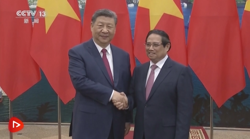 4月14日晚,國家主席習(xí)近平在越共中央駐地會(huì)見越南總理范明政。