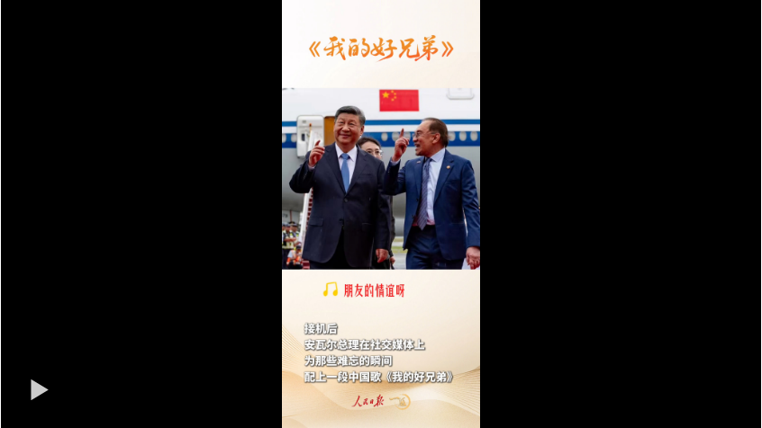 鏡頭記錄下的這些珍貴光影,被安瓦爾總理發(fā)布到個(gè)人的社交媒體上,他還暖心選配《我的好兄弟》這首中文歌作為背景音樂(lè)。