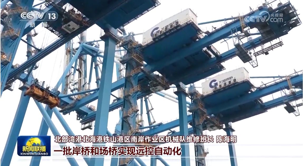 在廣西北海,鐵山港岸橋林立,貨輪有序裝卸,貨車(chē)往來(lái)穿梭,來(lái)自世界各地的貨物在這里高效暢通中轉(zhuǎn)。