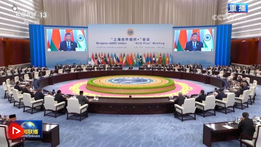 9月1日下午,“上海合作組織+”會議在天津梅江會展中心舉行。國家主席習近平主持會議并發(fā)表題為《凝聚上合力量 完善全球治理》的重要講話。