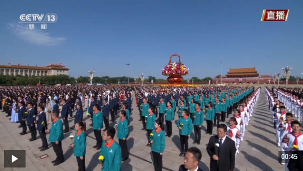 獨家視頻丨向人民英雄敬獻(xiàn)花籃儀式正式開始 全場高唱國歌