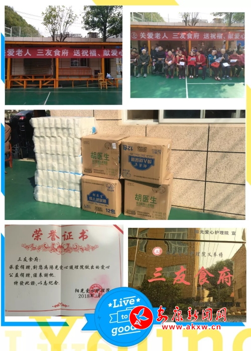 安康新聞網(wǎng)訊(記者 周。 愛不是靠說,而是靠做。說得再多不如踏實去做,愛老關(guān)鍵靠行動。昨天是農(nóng)歷9月9日重陽節(jié),為關(guān)愛老人,三友食業(yè)免費為護理院老人送溫暖,送早餐、紙巾,尿不濕等老人用品。并在這段時間里為70歲以上老人提供免費早餐。