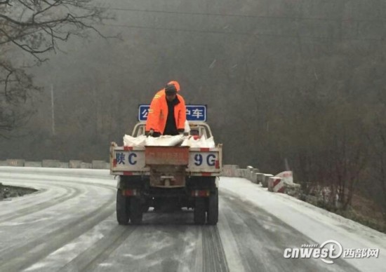 寶雞降雪,212省道對四軸以上貨車實行交通管制。
