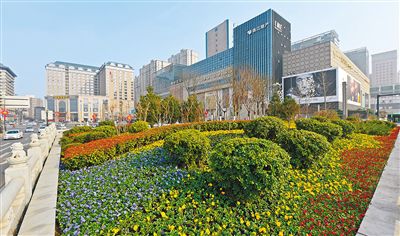 南二環(huán)道路中央區(qū)域鮮花盛開,綠草茵茵。 記者 謝偉 攝