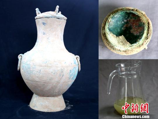 據(jù)介紹,此次出土銅壺的口部以條狀物覆扎有粗布,密封性極好,因此得以保留總量約300毫升的近乳白色透明液體。檢測(cè)后發(fā)現(xiàn),液體中含有較高的羥脯氨酸、谷氨酸等氨基酸以及少量任二酸、月桂酸等脂肪酸等物質(zhì)。其中,羥脯氨酸、谷氨酸等氨基酸的含量分別為4.83ug/g和2.40ug/g,屬于酒類(lèi)物質(zhì)。Ue3安康新聞網(wǎng)