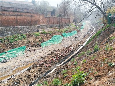 記者一行從位于臨潼建業(yè)家園小區(qū)南面的大秦建材批發(fā)市場(chǎng)直往北走,發(fā)現(xiàn)去年墻外的一片垃圾和臭水已經(jīng)不見了蹤影。之前排水管排出的臭水裸露在地面,臭水溝兩旁堆滿了生活垃圾,如今排水管口和長(zhǎng)長(zhǎng)的水泥管道連接在一起,排出的污水順著水泥管道直接從地下流走,已經(jīng)看不到污水的影子,也聞不見臭味,只聽到水泥管道里傳出嘩啦啦的水聲。兩邊的垃圾明顯被鏟車清運(yùn)了,現(xiàn)場(chǎng)還留下鏟車鏟過(guò)的痕跡。水泥管道的一大半已經(jīng)被埋在地下。