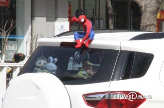 最近,不少寶雞私家車(chē)車(chē)主為了趕潮流,在自己的愛(ài)車(chē)車(chē)頂放上“蜘蛛俠”等玩偶。