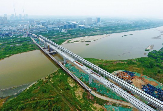 4月23日,由中鐵十七局承建的城際鐵路西安機場線項目渭河特大橋順利貫通。該橋全長7.33千米,是城際鐵路西安機場線控制性工程之一。YQq安康新聞網(wǎng)