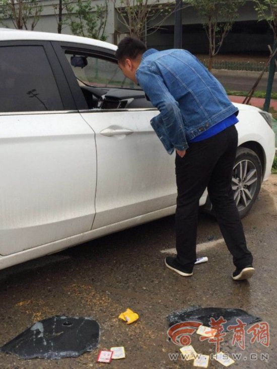 還有一名30多歲的車主,在車輛間來回尋找!霸缟衔臆嚥Aб脖辉伊,車?yán)锩嬉脖环。我有保險(xiǎn)已經(jīng)換了玻璃,但我唯一放在車上的近視鏡和車內(nèi)擺件卻不見了,我在這兒找找!