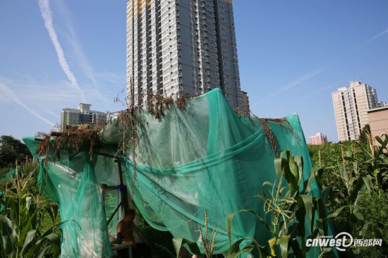 西安城墻東南角有個叫樂居場的地方,這里可是城市的中心地帶,在這高樓林立的地方有片空閑地,附近的退休老人在這里種菜。一名70多歲的老人一大早就來菜地勞動,熱了就在自己搭的窩棚里休息一會兒。NAf安康新聞網(wǎng)