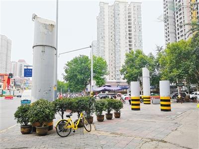 “太不美觀(guān)了,這些灰色的橋墩很難看,在人行道中間也擋路,友誼路和太白路分別是東西和南北方向的主干道,人流量也很大,上下班高峰行人多時(shí),它們特別礙事。其實(shí)拆掉是最好的選擇,路面還能再開(kāi)闊一點(diǎn)!崩钆空f(shuō),這些橋墩原本灰色的柱體表面漆皮紛紛脫落,斑駁不堪,一到夜間視線(xiàn)不好,經(jīng)常有行人走著走著就撞了上去,存在很大的安全隱患。因此,近期橋墩下部被刷上了黑黃相間的警示標(biāo)志。