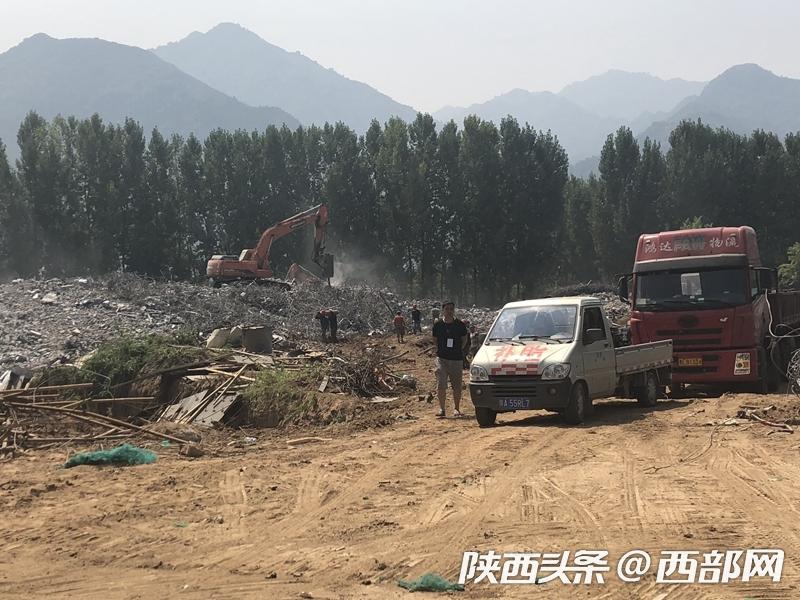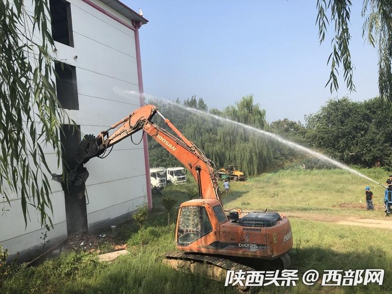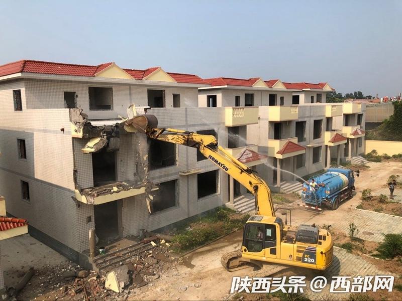 在灤鎮(zhèn)街道灃峪口村,一圈圍墻里的十棟別墅已經(jīng)拆掉了門窗,清理了內部裝修,街道工作人員調集大型機械,集中人力,開始全力拆除主體部分。