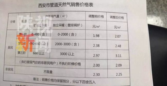 一是調(diào)整居民用氣銷售價格。綜合中省調(diào)價因素,西安市需要疏導上游門站價格增幅0.056元每立方米。