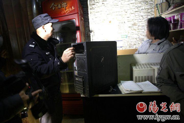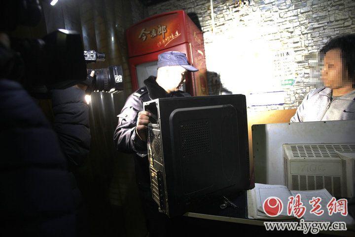 民警將黑網(wǎng)吧電腦主機(jī)進(jìn)行暫扣。