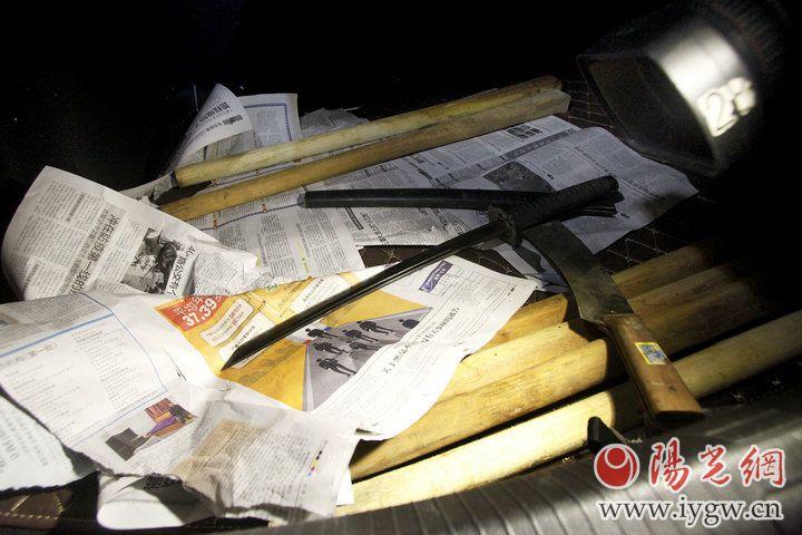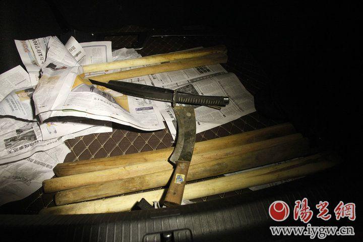 記者跟隨一路民警來到東揚(yáng)善村,清查過程中,民警發(fā)現(xiàn)一無牌車輛停在道路中央,車上有2名男子,民警遂上前進(jìn)行盤查,但2名男子拒不配合民警工作。經(jīng)進(jìn)一步對車輛檢查發(fā)現(xiàn),后備箱中藏有管制刀具2把,木棍4根。2名男子見狀欲逃離現(xiàn)場,民警眼急手快,迅速將其當(dāng)場制服。經(jīng)突審,2名男子因與人發(fā)生經(jīng)濟(jì)糾紛,故攜帶了管制刀具和木棍。2名男子現(xiàn)已被帶回派出所接受進(jìn)一步調(diào)查。
