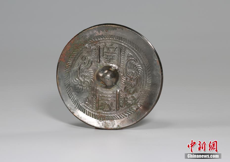 1月10日,陜西省考古研究院透露,2017年至2018年,陜西省考古研究院在西咸新區(qū)空港新城雷家村發(fā)掘了一處十六國(guó)墓地,該墓地共有十二座墓葬,分南北兩排,每排六座。這是咸陽原上首次發(fā)現(xiàn)的集中分布的十六國(guó)時(shí)期的墓葬,也是陜西首次在十六國(guó)墓葬中發(fā)現(xiàn)祭祀遺跡和谷物遺存。圖為銅鏡。 中新社記者 鐘欣 攝tP3安康新聞網(wǎng)