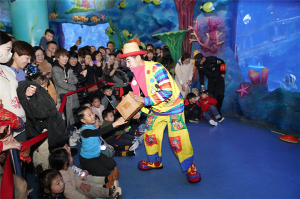 新春最少不了的是親子家庭合家歡,曲江海洋館舉辦的新春游園會,海洋滑稽節(jié)也是人頭攢動,家長們?nèi)页鰟訋е⒆釉诤5资澜鐣秤,更有幽默滑稽的演出和互動游戲增進親子交流。