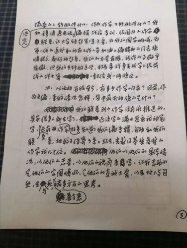 賈平凹一直保留著手寫文稿的習(xí)慣,圖為他接受《新華每日電訊》草地副刊采訪時,回復(fù)記者的手稿。