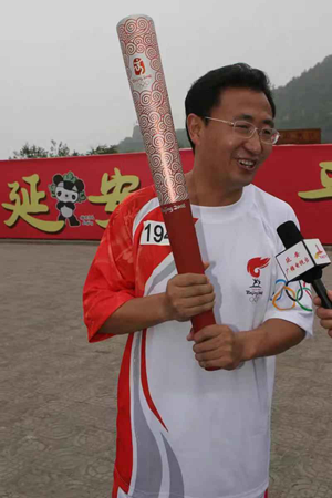 (作為第29屆奧運(yùn)會(huì)陜西火炬手代表接受媒體采訪 攝影胡志軍)