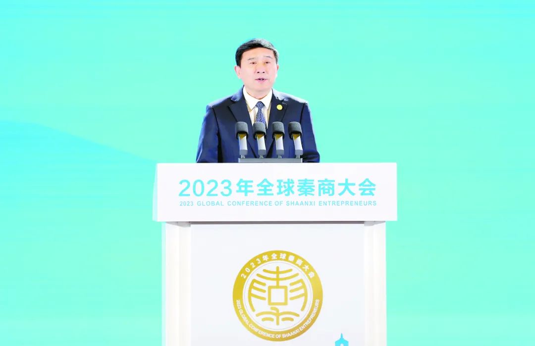 陜煤集團(tuán)黨委書記、董事長張文琪在2023年全球秦商大會(huì)開幕式上發(fā)言。