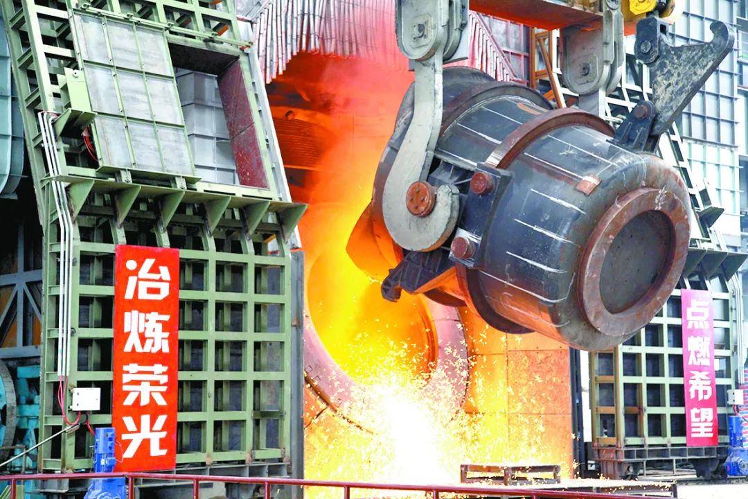 陜鋼集團(tuán)漢鋼公司煉鋼廠轉(zhuǎn)爐車間生產(chǎn)現(xiàn)場。