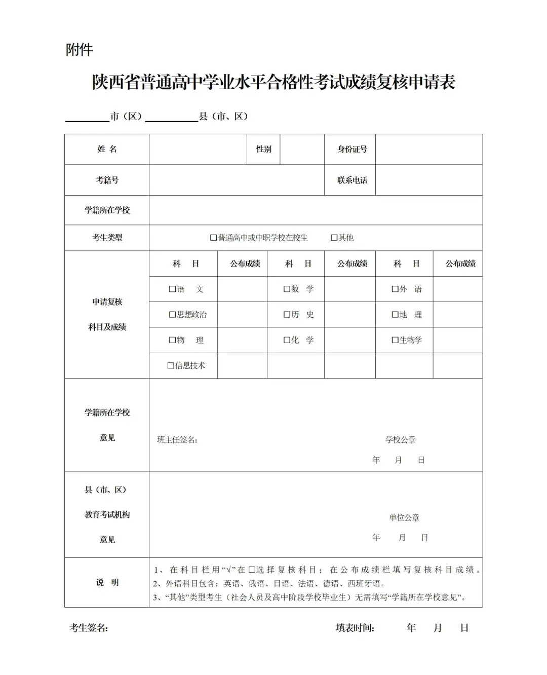 附件:陜西省普通高中學(xué)業(yè)水平合格性考試成績(jī)復(fù)核申請(qǐng)表