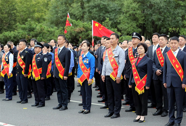 現(xiàn)職省級領(lǐng)導(dǎo),省直各部門、各人民團(tuán)體主要負(fù)責(zé)同志,省級各民主黨派主要負(fù)責(zé)人,機(jī)關(guān)干部、學(xué)校師生、企業(yè)職工、武警官兵、公安民警、消防救援指戰(zhàn)員和社會各界群眾代表等3萬多人參加升國旗儀式。