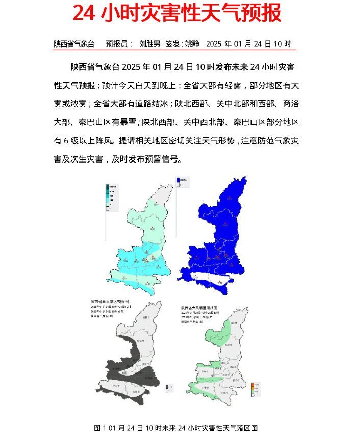 陜西省氣象臺2025年01月24日10時發(fā)布未來24小時災(zāi)害性天氣預(yù)報:265安康新聞網(wǎng)