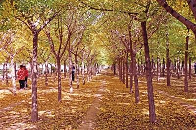 金黃色的銀杏葉鋪滿地面 10月26日,記者路過大荔縣許莊一片50多畝的銀杏林時,發(fā)現(xiàn)了這個當?shù)赜忻摹熬W(wǎng)紅地”。金黃色的銀杏葉鋪滿大地,為厚重的黃土穿上了艷……