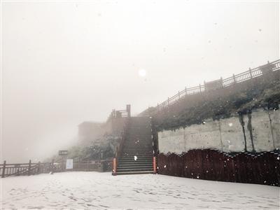 昨日15時,太白山天圓地方景點地面上的積雪已達3—4厘米。 賈新輝 記者 代澤均 攝 9月27日,秦嶺主峰太白山迎來了一場突如其來的降雪,飄飄灑灑的雪花讓前來登……