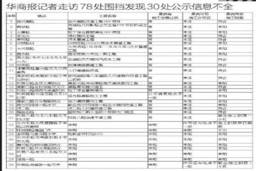 78處圍擋類型: 1、地鐵:21處 2、供熱:13處 3、自來水:2處 4、人行道改造:4處 5、污水管道:4處 6、電力通信:4處 7、PPP項(xiàng)目:4處 8、市政改造:8處 9、天……