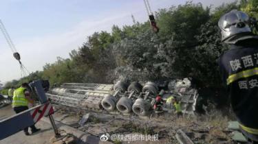 原標(biāo)題:一輛裝載電石的貨車在西安繞城附近側(cè)翻 事故路段已通 一輛裝載電石的貨車在西安繞城附近側(cè)翻。(圖據(jù)陜西都市快報(bào)) 記者從西安交警高速大隊(duì)了……