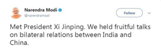 “見了習(xí)近平主席。我們就印中雙邊關(guān)系舉行了富有成果的會談。”