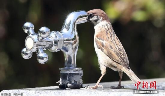 當?shù)貢r間2015年5月26日,韓國氣象局發(fā)布了本年度首個熱浪警報,稱在未來幾日,氣溫或升至33攝氏度。首爾街頭一只小鳥試圖把頭探進水龍頭里喝水。中新網(wǎng)6月25日電……