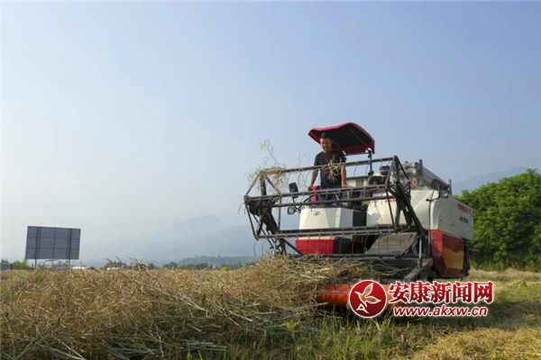 安康新聞網(wǎng)訊(通訊員 謝小利)“轟隆隆”一臺(tái)聯(lián)合收割機(jī)加大油門駛?cè)胗筒说,油菜稈從收割機(jī)“嘴”里吞進(jìn)去,瞬間去殼的菜籽從側(cè)邊吐出來,鍘碎的秸稈均勻的灑在地里 …